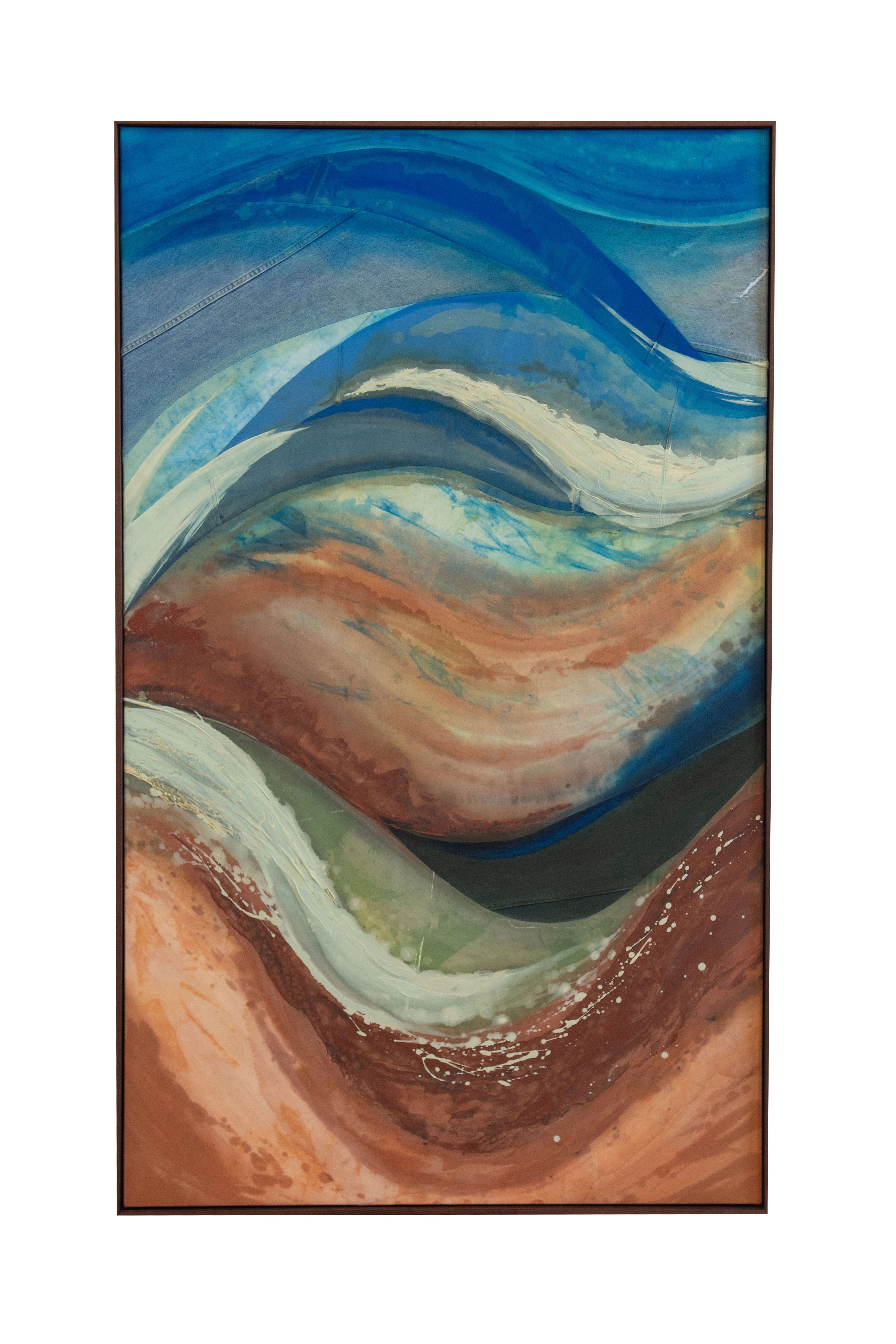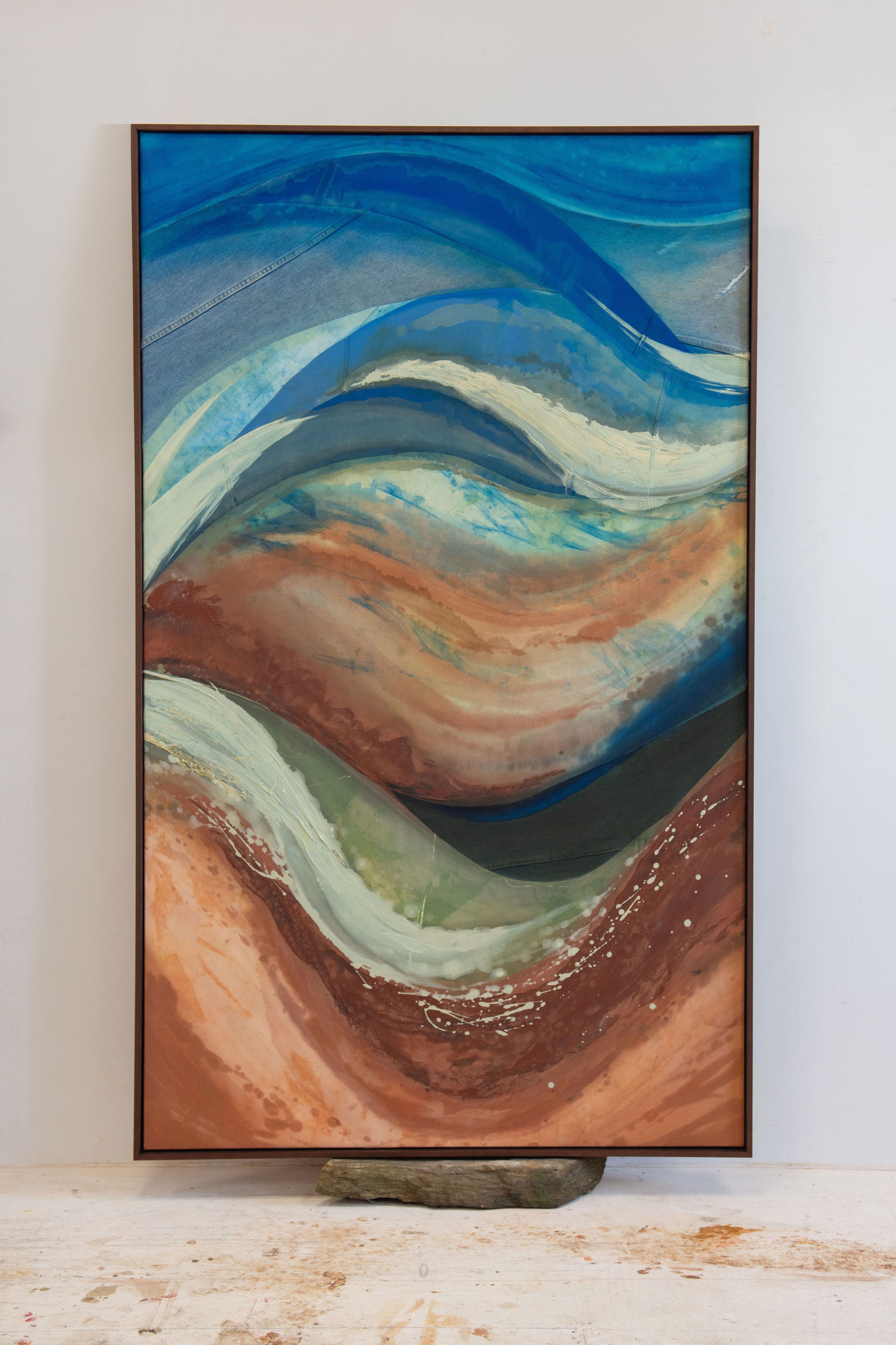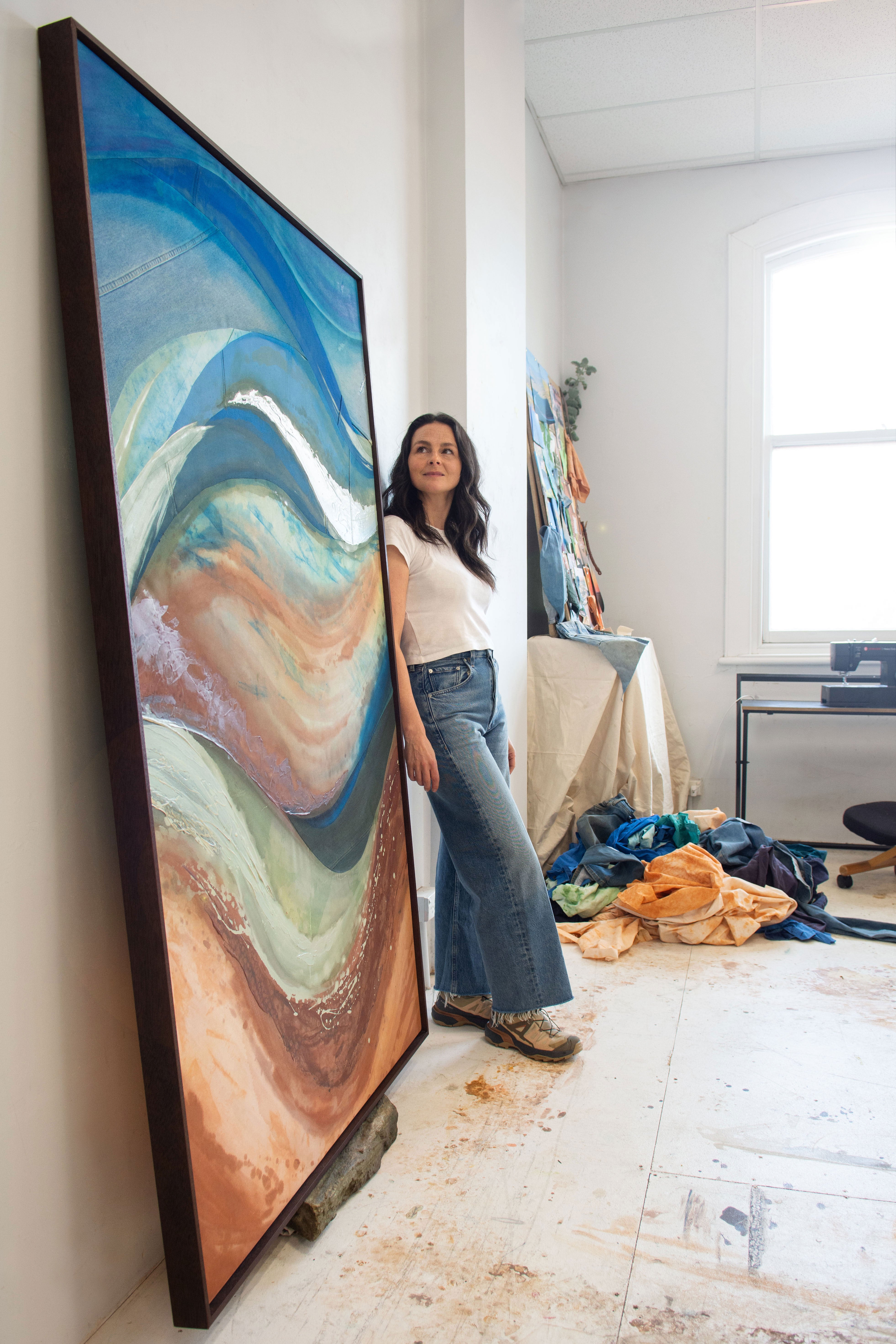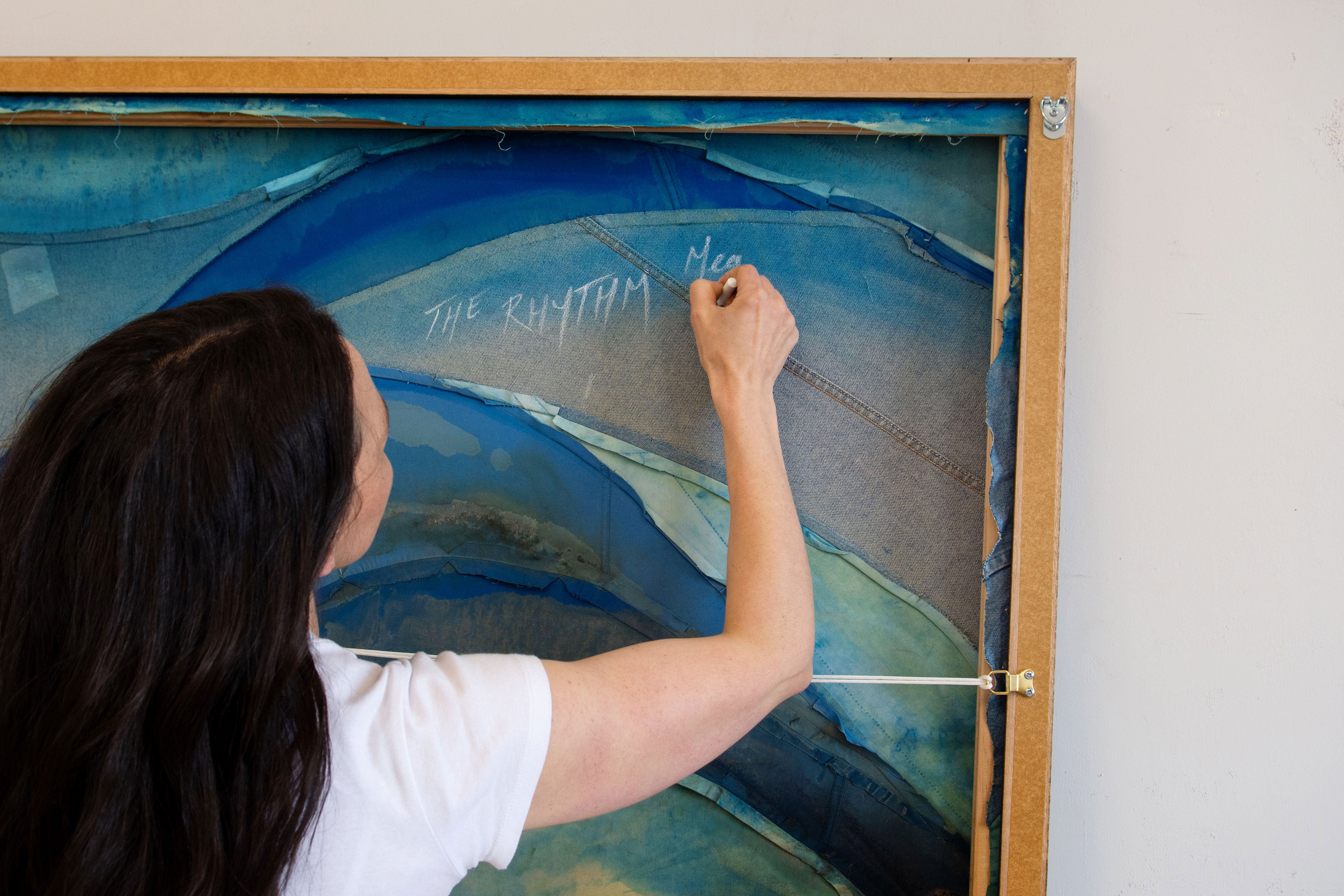 This beautifully commissioned piece of art, labelled The Rhythm is Meg's love letter to Bullo River Station and outback Australia. A textile-based artwork inspired by her visit, and featuring worn materials from station ringers and staff.