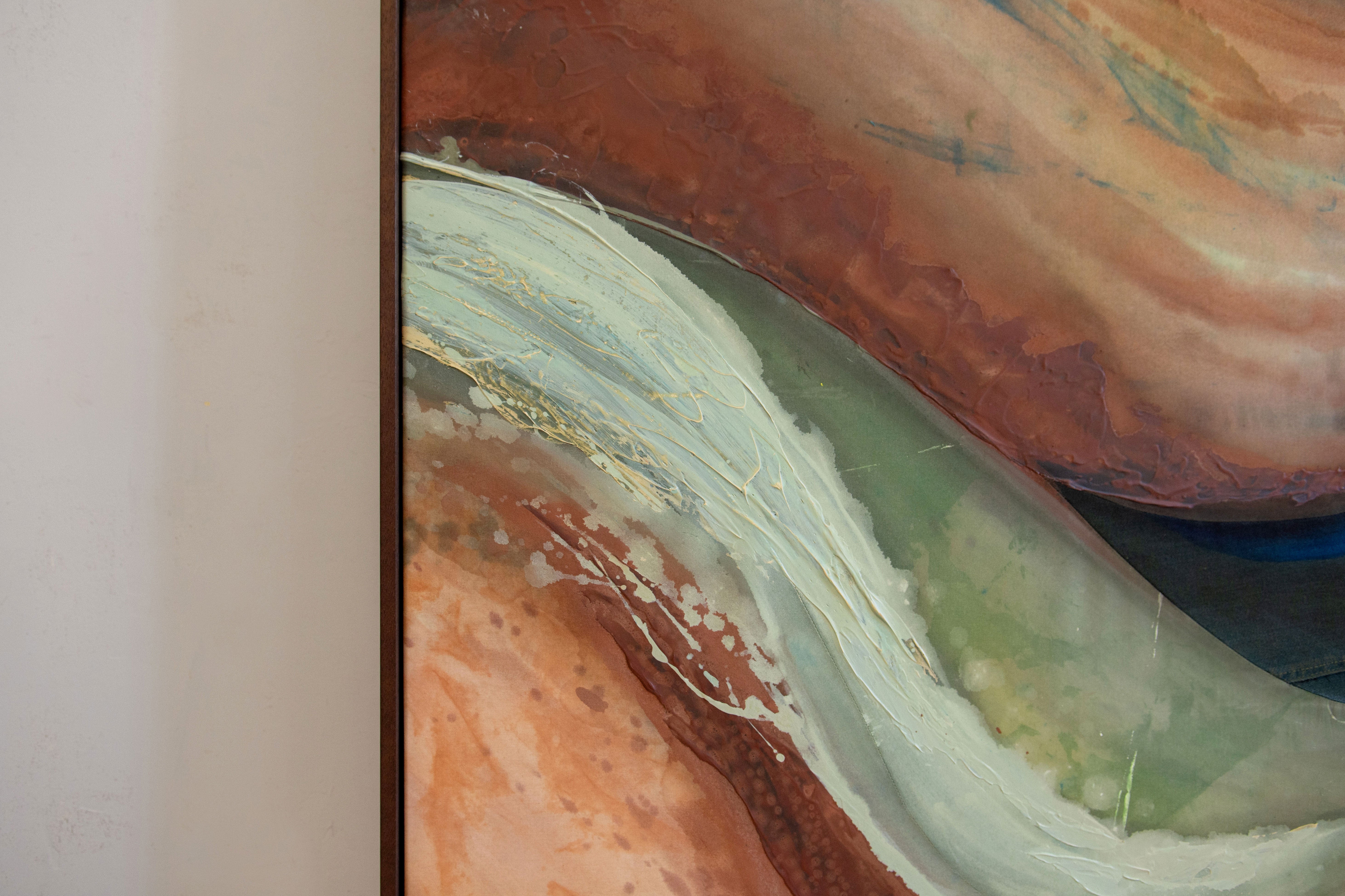 This work titled The Rhythm is a tribute to the intricate ecosystem of Bullo River Station, a place where every element breathes life into the next. When I stood on that land, in Australia’s Northern Territory, I knew I couldn’t choose just one subject: the vast sky, the winding river, the red earth, and the lush greens all exist in a delicate balance. Each feeds the other, creating a circulatory system that pulses in a delicate rhythm.