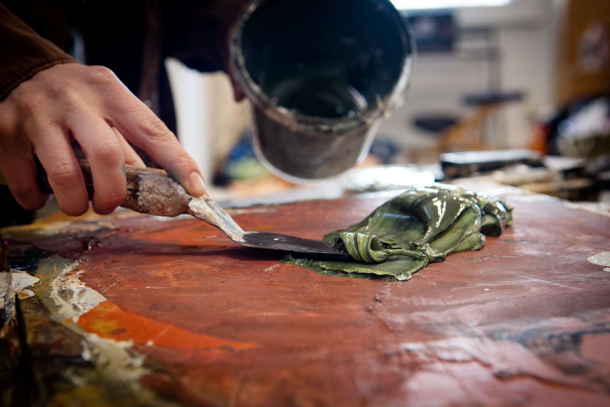 Returning to her studio in Dunedin, New Zealand, Meg began the process of re-immersing herself in Bullo River Station - revisiting her sketches, colour samples, and the collected materials, and laying these out across mood boards. From there, she layered pigments, paints, and dyes, while slowly incorporating the station sourced materials - a slow and laborious process, guided by her artistic inspiration and intuition.